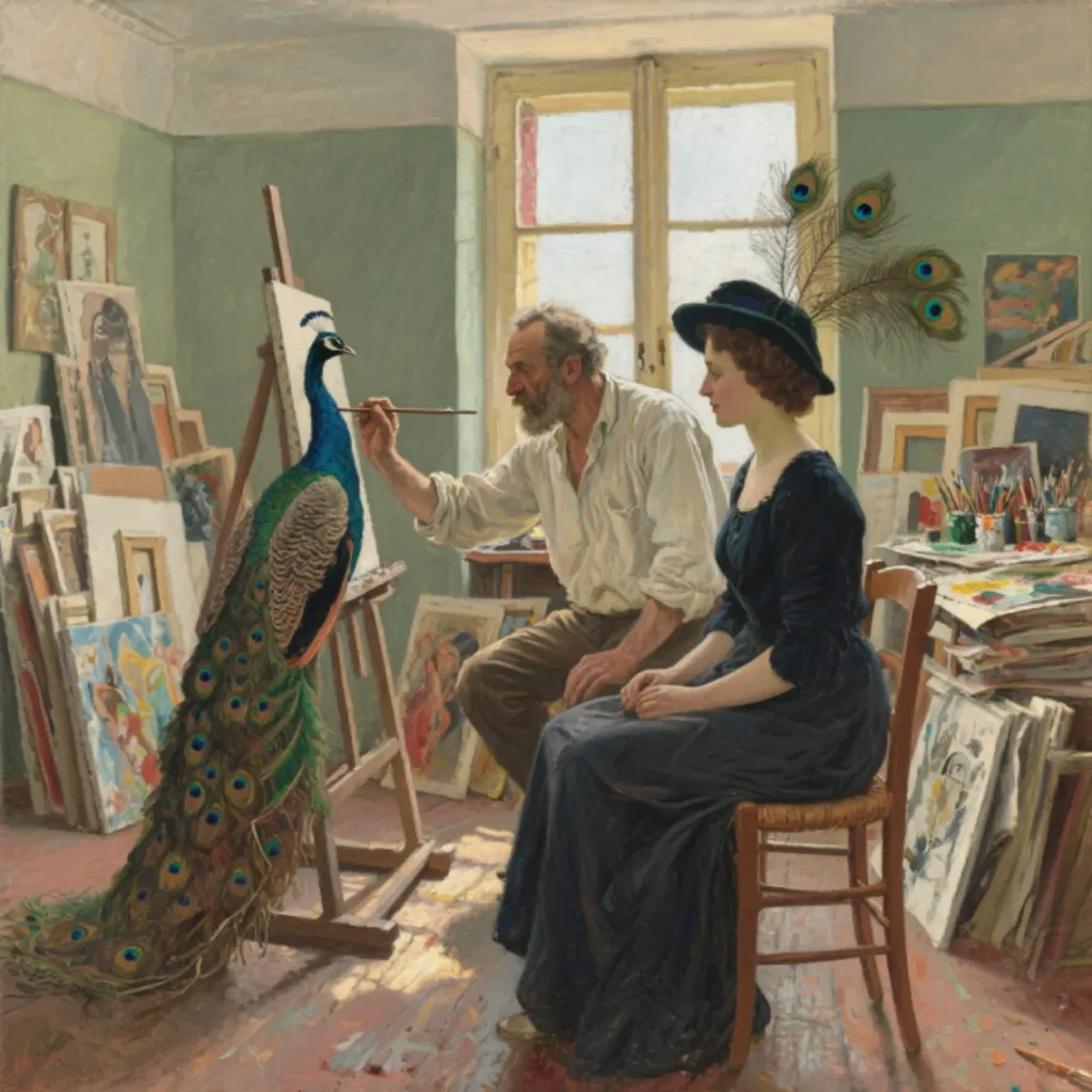 Once, to perfect the feather on the hat, Picasso went to the market and bought a peacock, carefully studying the sheen and form of its plumage. He placed the peacock in a corner of the studio while Olga sat opposite him wearing the hat. The woman and the bird became a peculiar and beautiful scene. His neighbors thought he had gone mad, but Picasso paid them no mind. “Art,” he said, “is about daring to do what others dare not.”