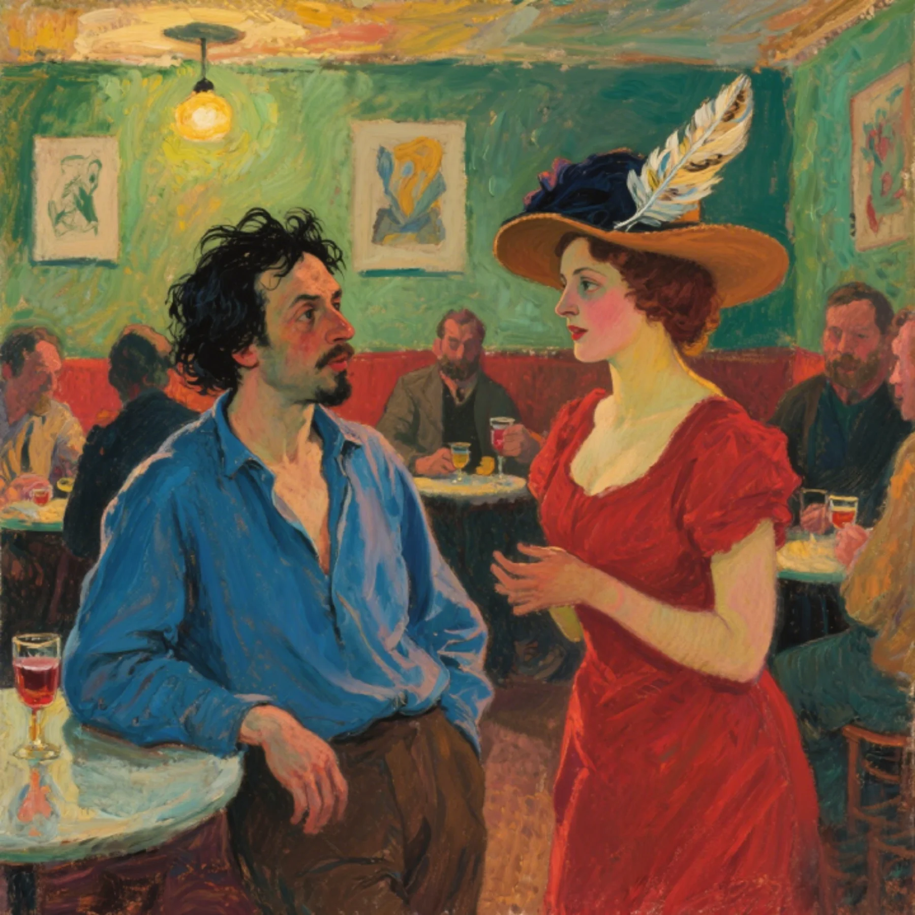 Picasso’s gaze was instantly captured. He stared at the hat, then at Olga, and suddenly seized a brush, dipping it in red paint and smearing it onto the canvas. His strokes were fast and urgent, as if to unleash the fire within him.