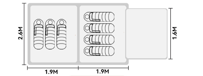 - Floor Area: 10m², providing ample space for multiple campers, making it ideal for small families or group trips.